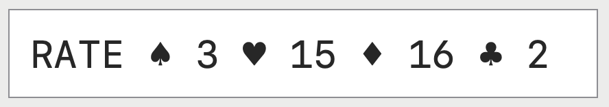 "RATE \(horses.map(\.oddsLabel).joined(separator: " "))"