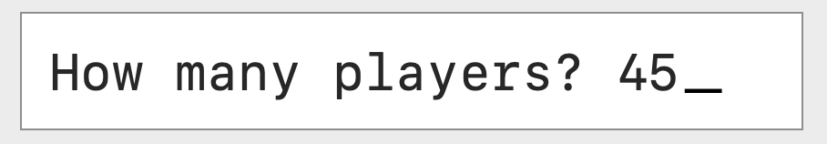 Now after the user is satisfied with their input, they will press RETURN, which will call moveToNextState(). We need to read the userInput, convert it to Int, do validations, and create Players.
