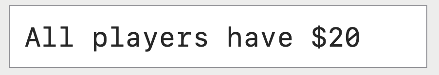 PRINT("ALL PLAYERS HAVE $\(GameConfig.startingMoney)")